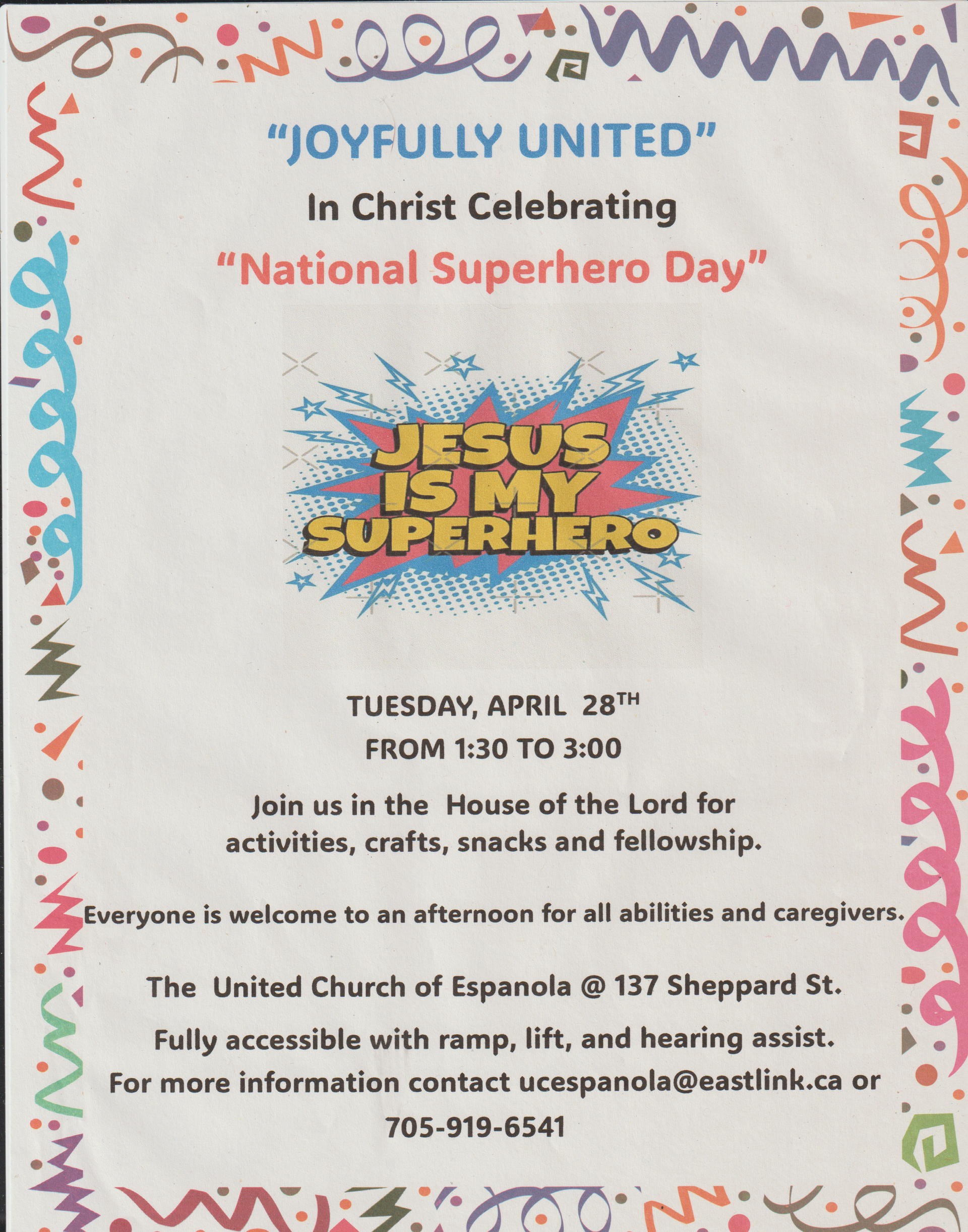 Since October 2022, on the third Tuesday of the month, from September to May, The United Church of Espanola has been hosting a monthly Soup & Sandwich Lunch. Our guests enjoy hot soup, an assortment of sandwiches and if available, cookies and squares. Once in a while, we provide a chilli lunch.