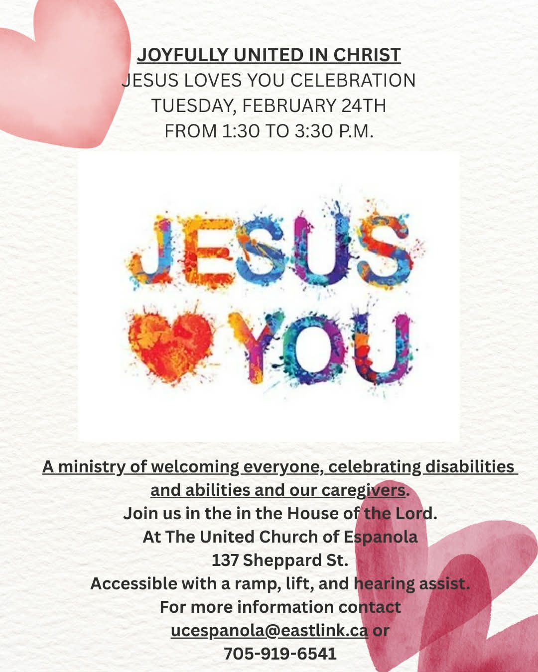 The United Church of Espanola, 137 Sheppard St. will be having a mid-week lent service on Wednesdays, beginning February 25th through April 1st at 10 a.m. All are welcome.